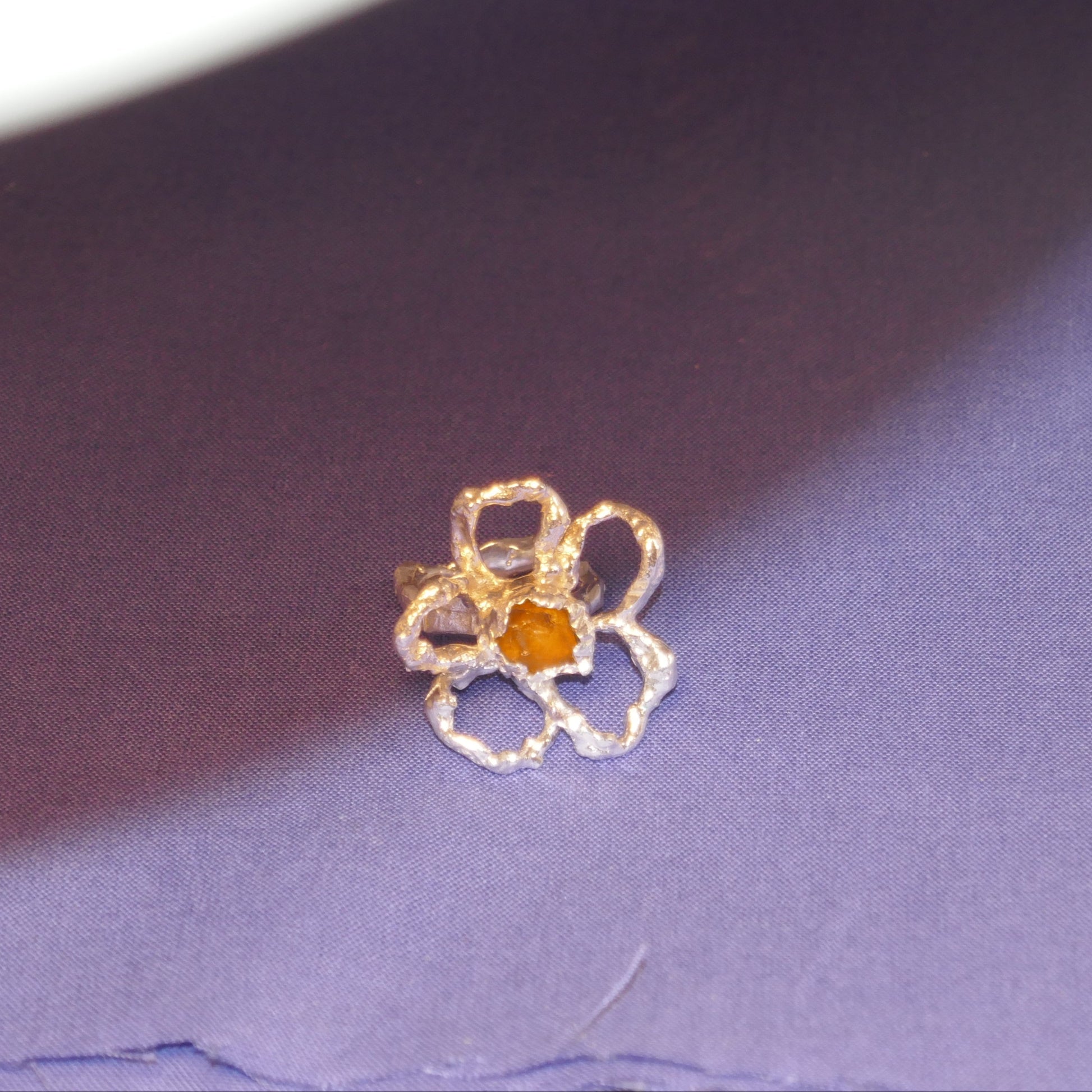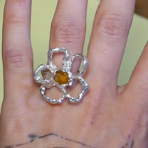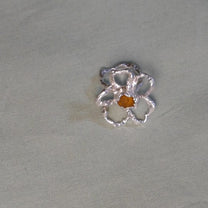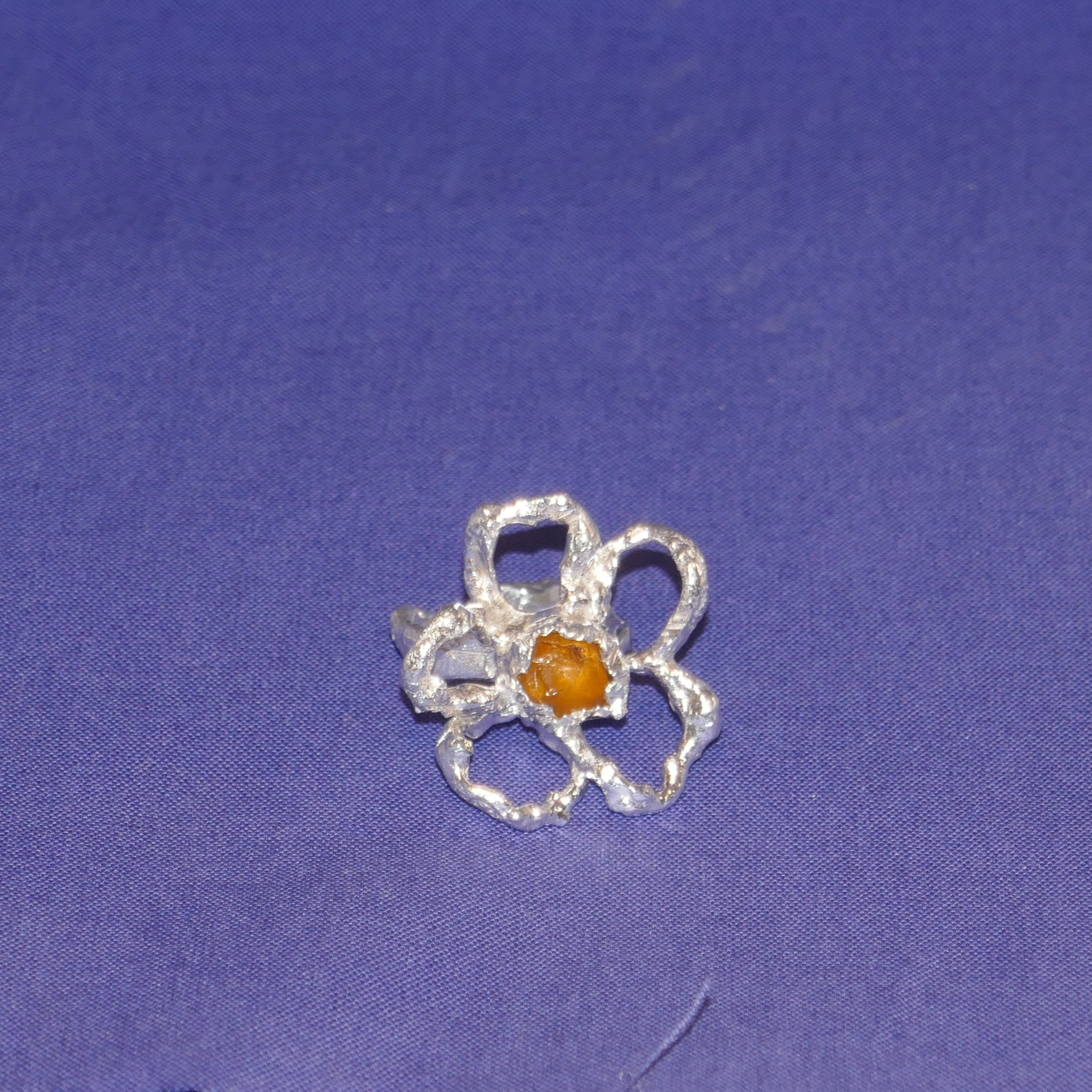this little flower is shaped in 925 sterling silver and set with warm amber.