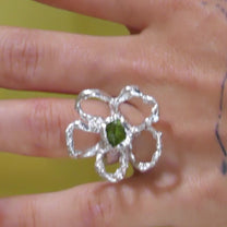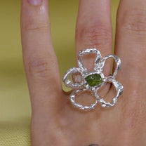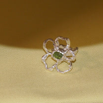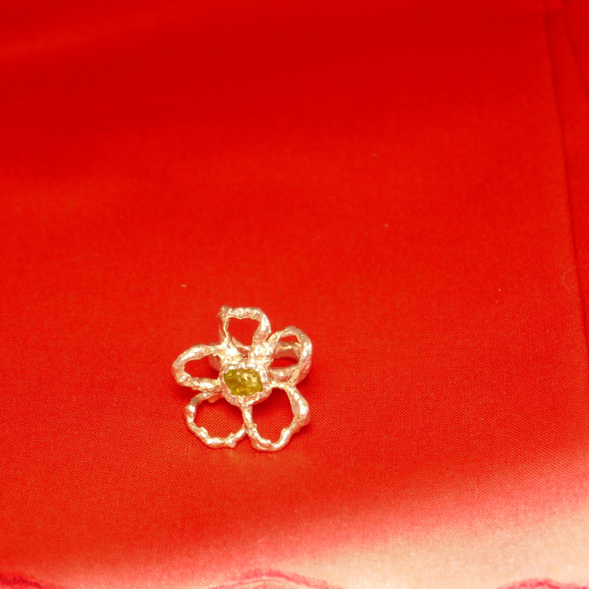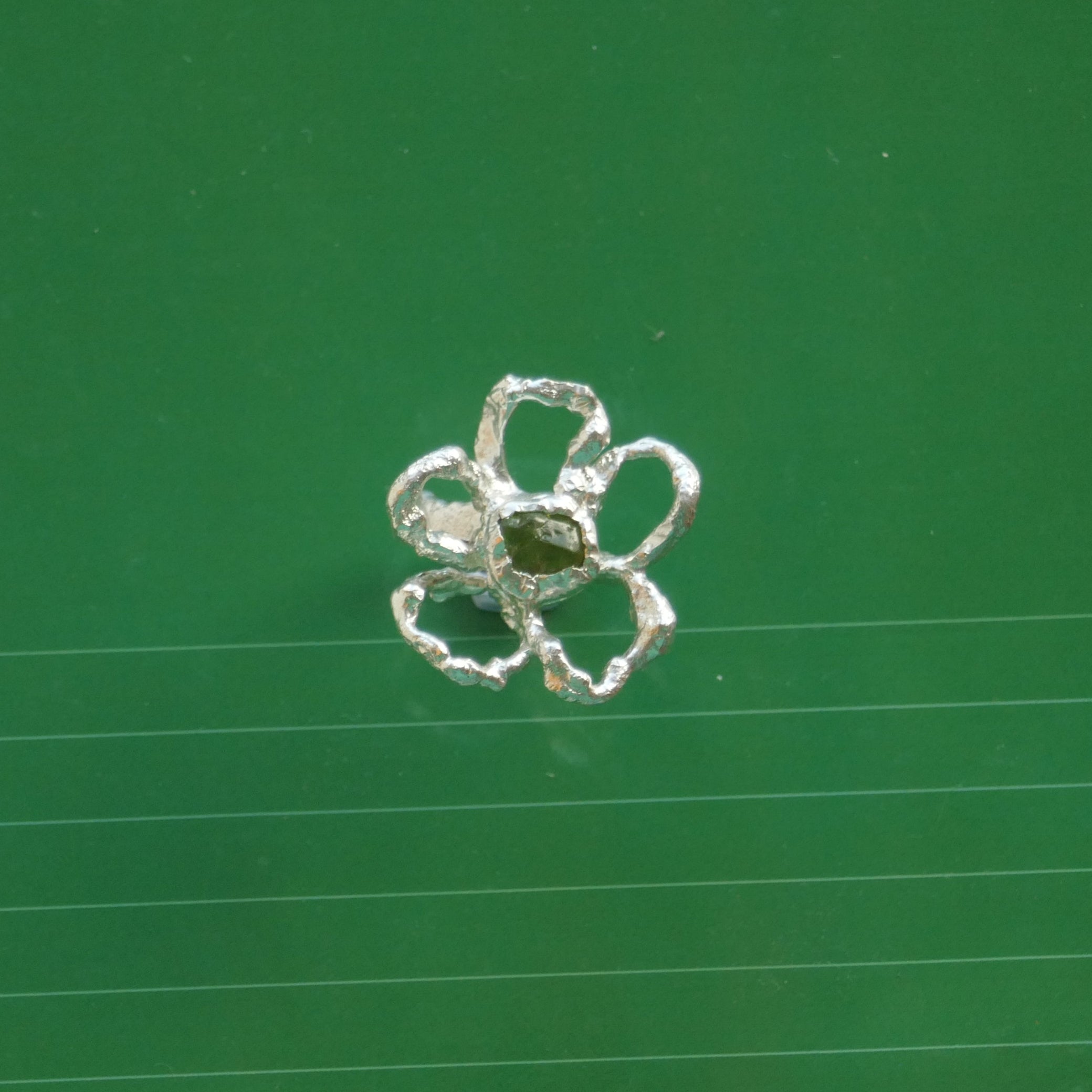 this one is shaped in 925 sterling silver and set with a peridot, like a little green dot in the middle of a crayon doodle.